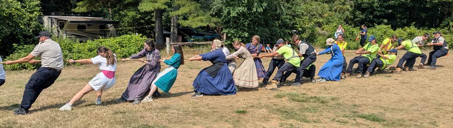 Park staff versus the campers Tug-o-War, a part of the Old-Fashioned Fun & Games Event on History Weekend.